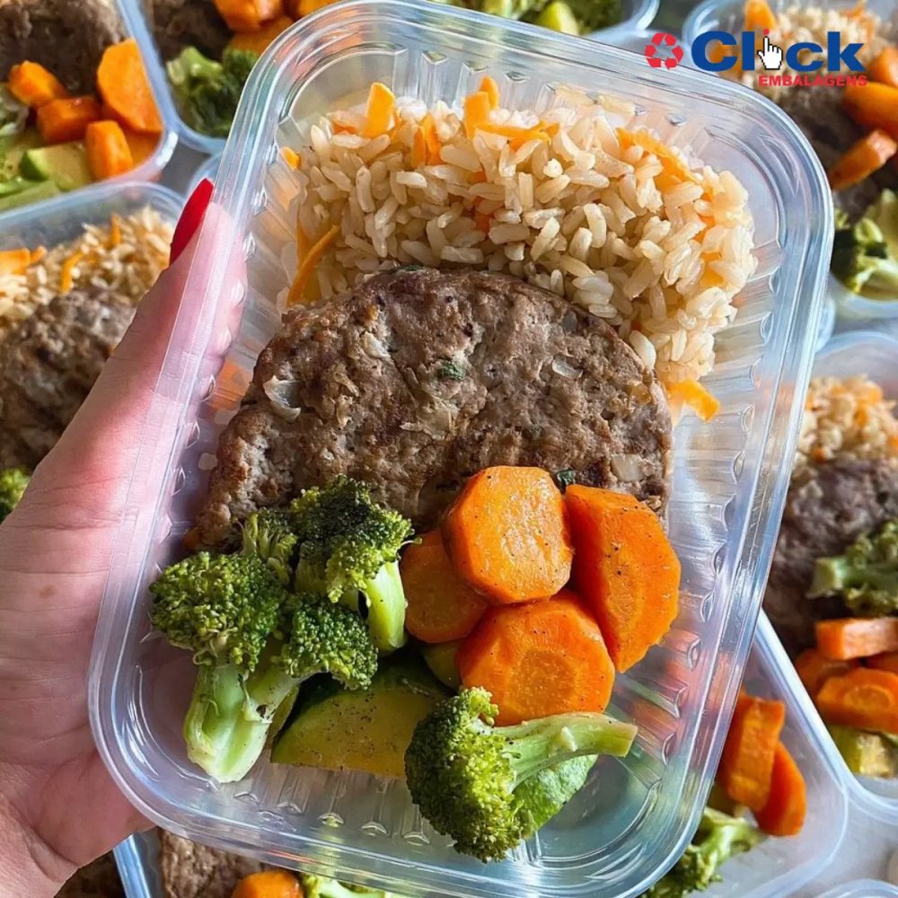 Arroz integral, feijão preto, legumes salteados e sobrecoxa de frango assada ao molho barbecue. Uma opção equilibrada e marcante, com sabor defumado e textura suculenta — ideal para quem busca uma refeição nutritiva e deliciosa!