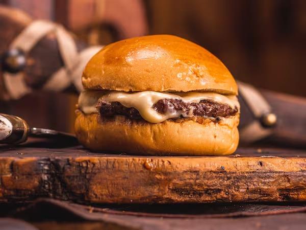 Pão de brioche, blend 150g e muçarela